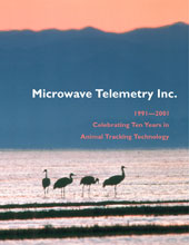 2001 — We awarded a Solar Argos/GPS 70g PTT to Claire Mirande and Kate Fitzwilliams of the International Crane Foundation for their submission depicting Black-neck Cranes in a silhouette against a sunset in Caottai, China. This beautiful image, taken by George Archibald, was used for the cover photo of our 10th anniversary catalog (at right).