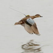2013 — Manuel Grosselet and Georgita Ruiz were awarded first prize for their photo of a male Blue-winged Teal tagged with a Solar 9.5g PTT.